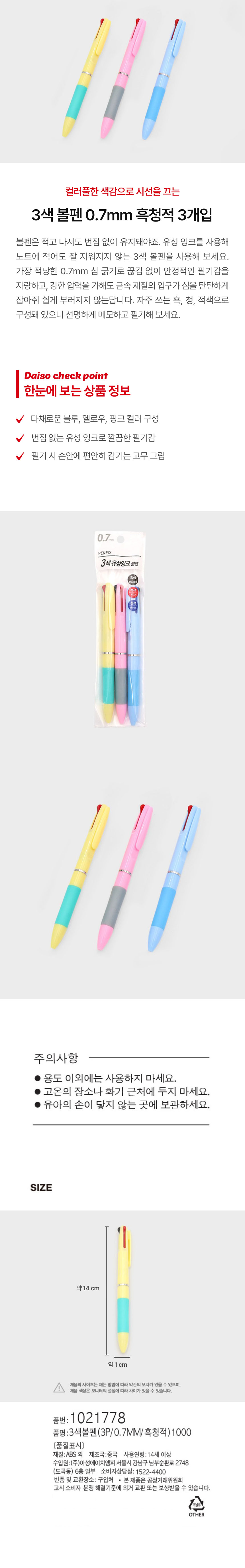 DAISO 3-color ballpoint pen (3P/0.7mm/black blue red)
