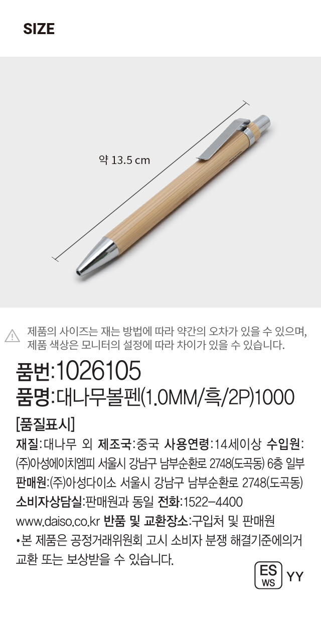 DAISO Bamboo Ballpoint Pen (1.0mm/Black/2P)