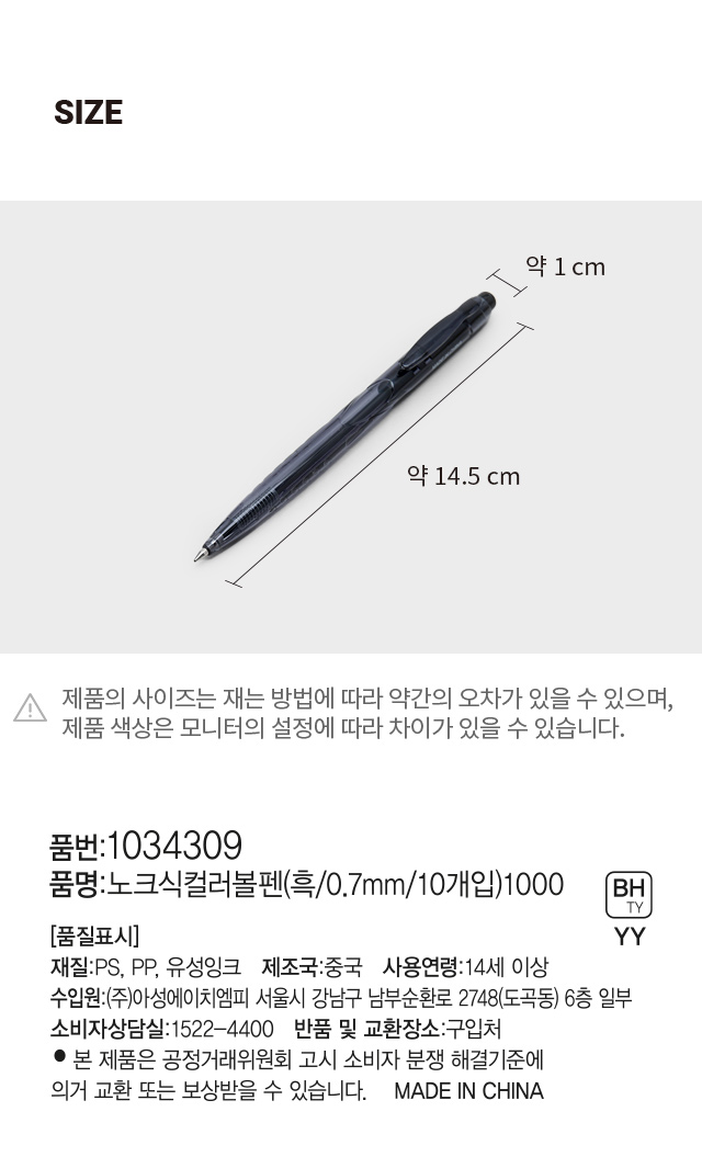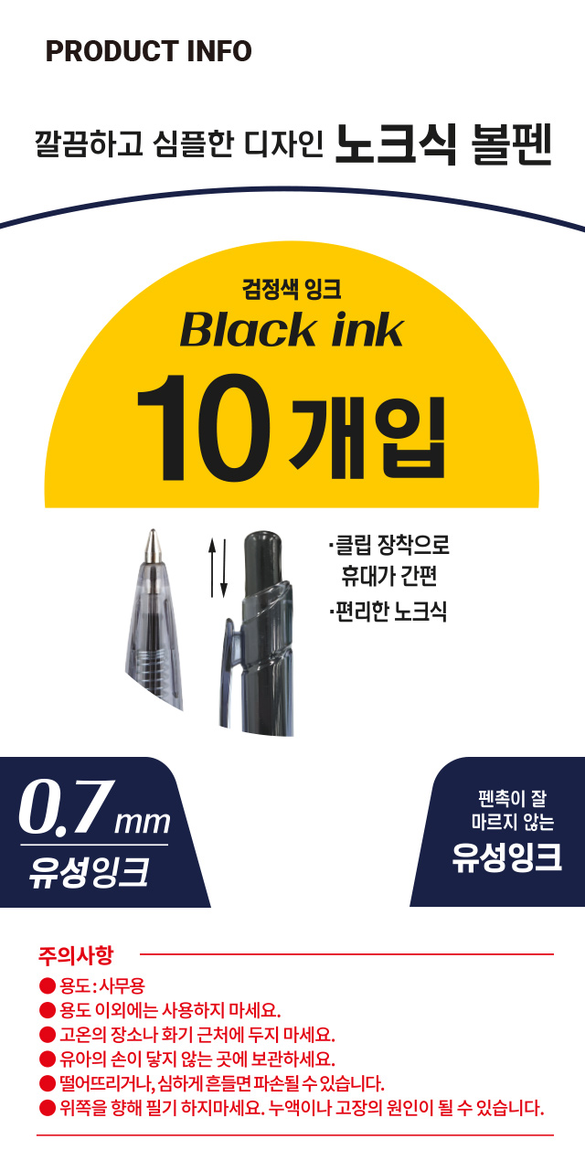 DAISO Knock-type color ballpoint pen (black/0.7mm/10 pieces)