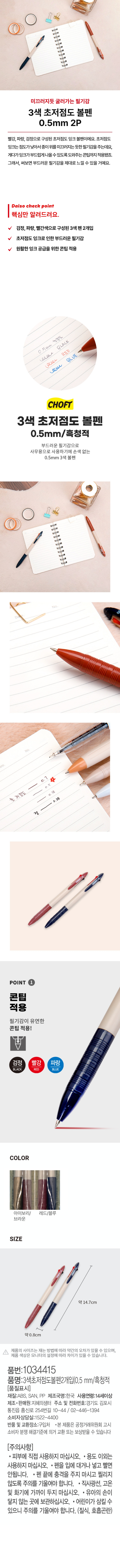 DAISO 3-color ultra-low viscosity ballpoint pen 2 pieces (0.5mm/black blue red)
