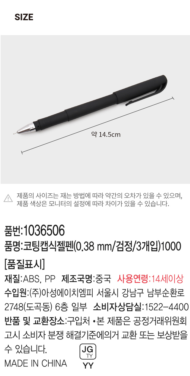 DAISO Coated cap gel pen (0.38mm/Black/3 pieces)