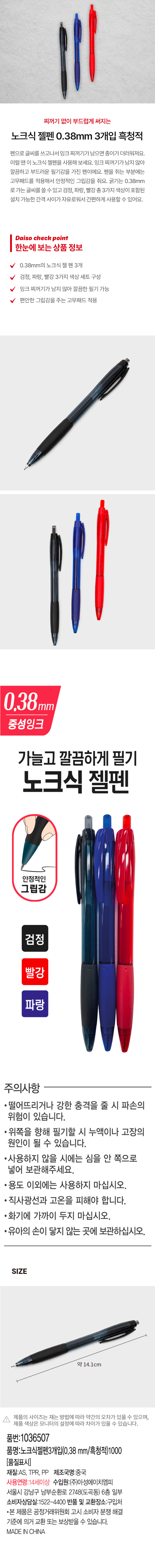 DAISO Knock-type gel pen 3 pieces (0.38mm/black, blue, red)