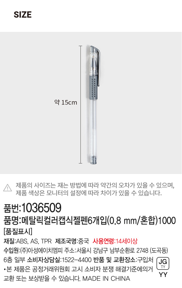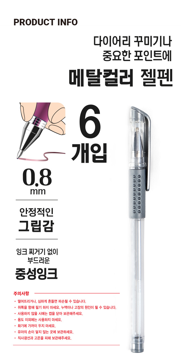 DAISO Metallic Color Cap Gel Pen 6 Pieces (0.8mm/Mixture)