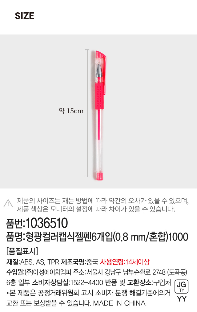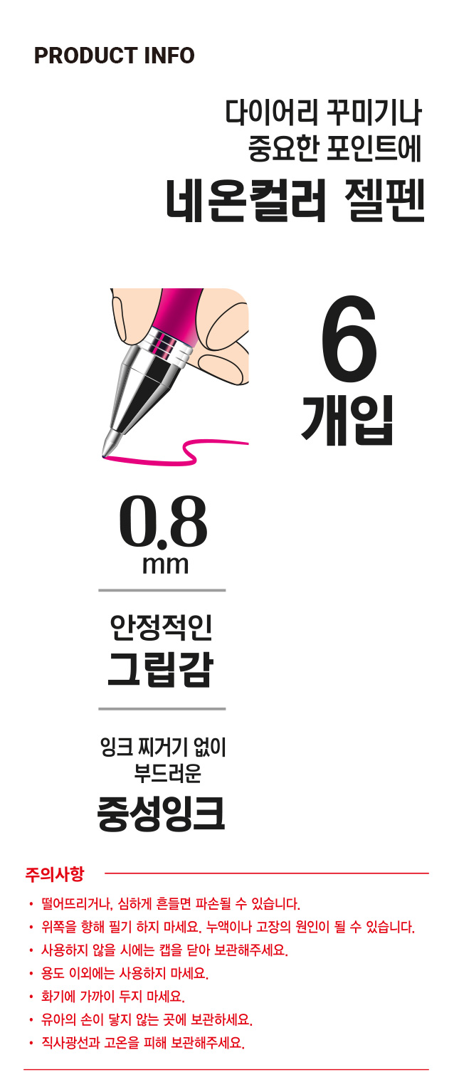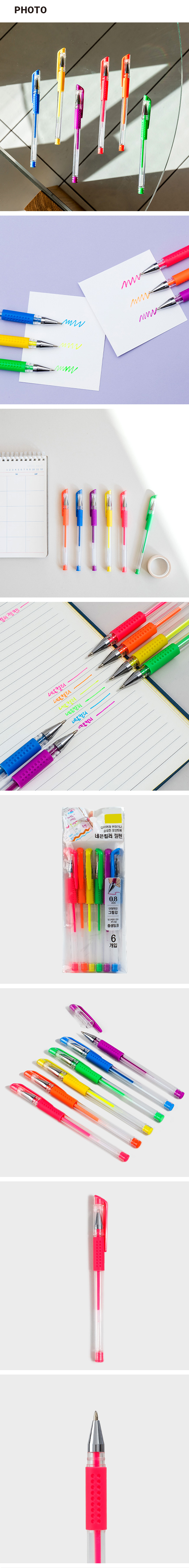 DAISO Fluorescent Color Cap Gel Pen 6 Pieces (0.8mm/Mixture)