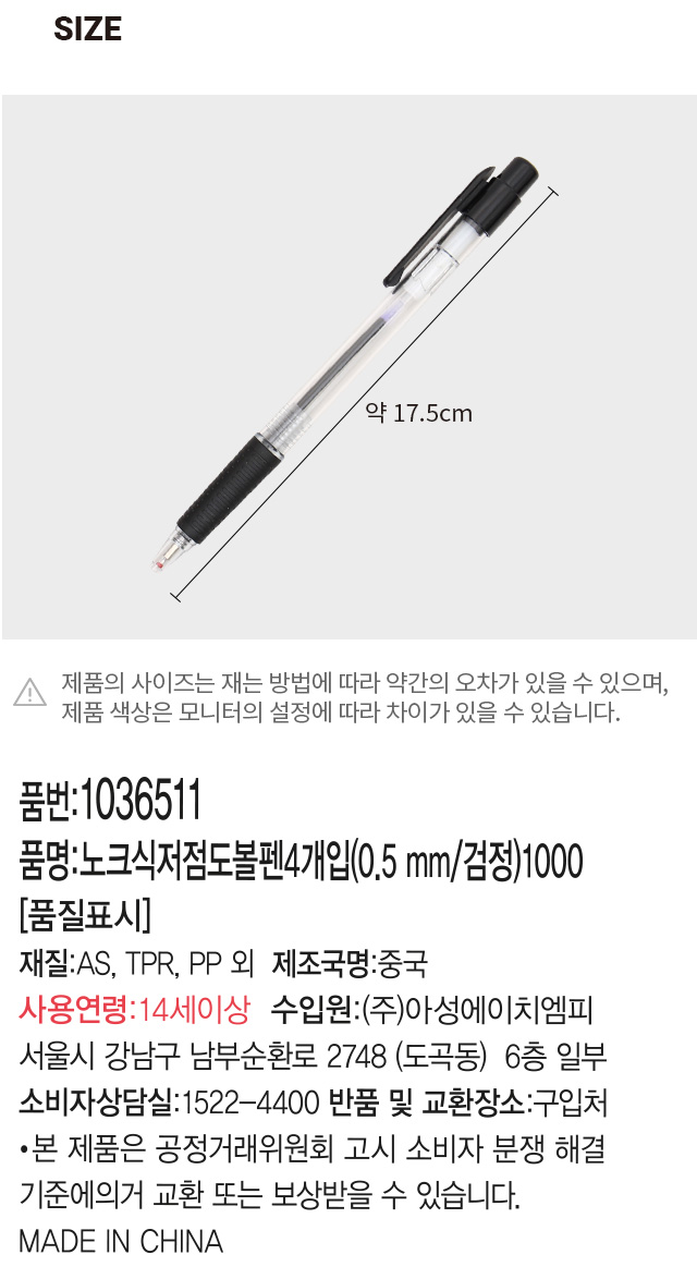DAISO Knock-type low viscosity ballpoint pen 4 pieces (0.5mm/Black)