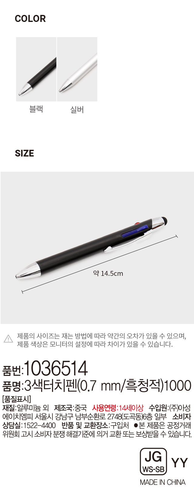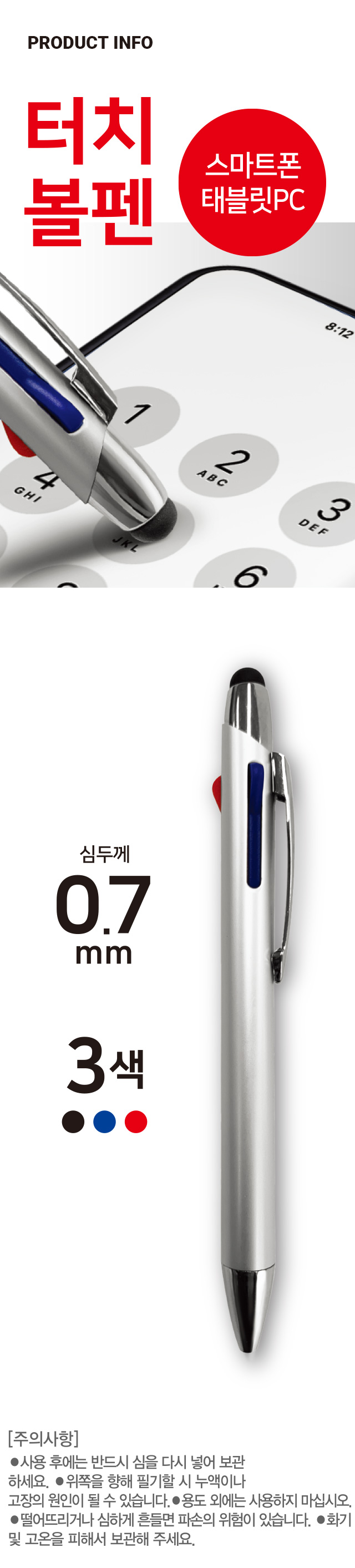 DAISO 3-color touch pen (0.7mm/black, blue, red)