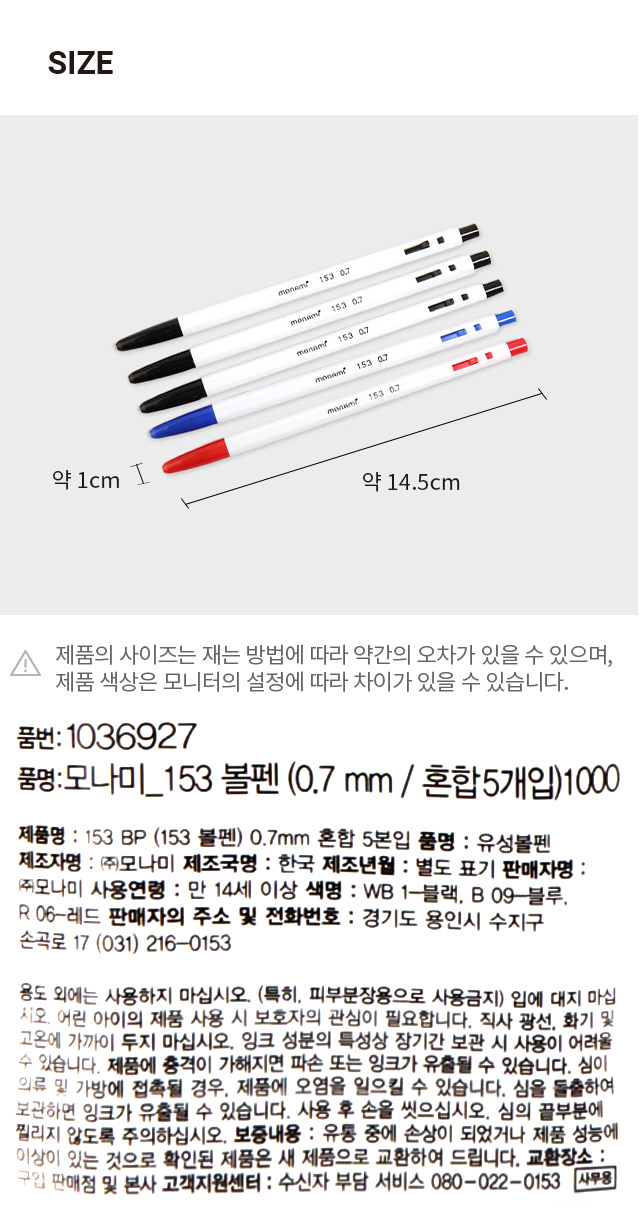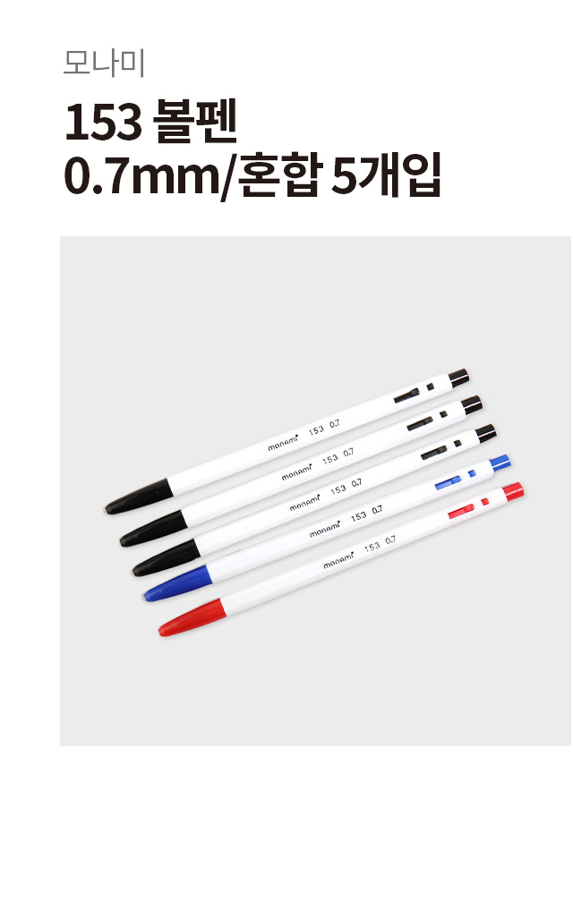 DAISO Monami_153 Ballpoint Pen (0.7mm/Mixture 5 pcs)