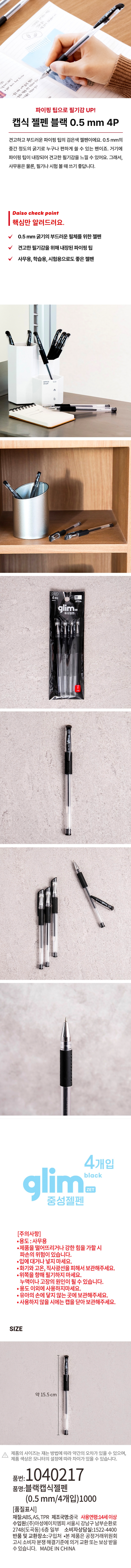 DAISO Black cap gel pen (0.5mm/4 pieces)