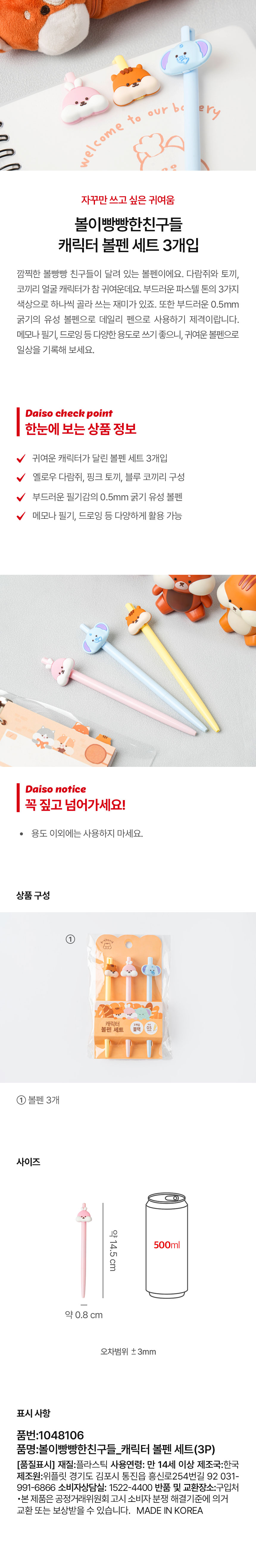 DAISO Chubby Buddy_Character Ballpoint Pen Set (3P)