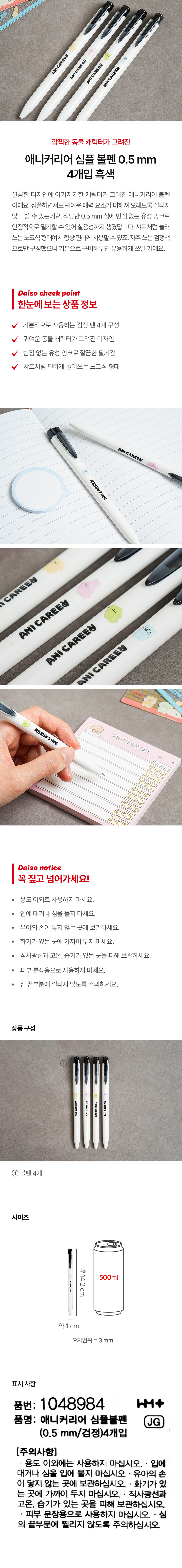 DAISO Anicary Simple Ballpoint Pen (0.5mm/Black) 4 pcs