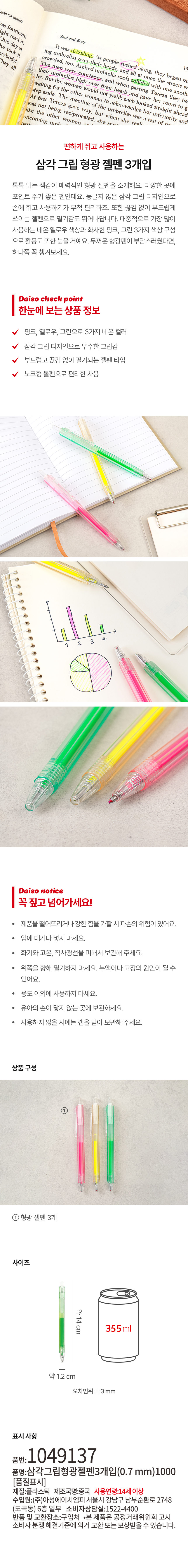 DAISO Triangle grip fluorescent gel pen 3 pieces (0.7mm)