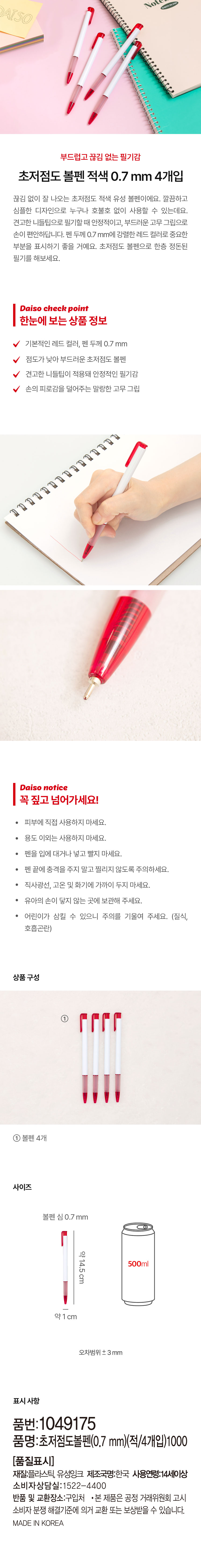 DAISO Ultra-low viscosity ballpoint pen (0.7mm) (red/4 pieces)