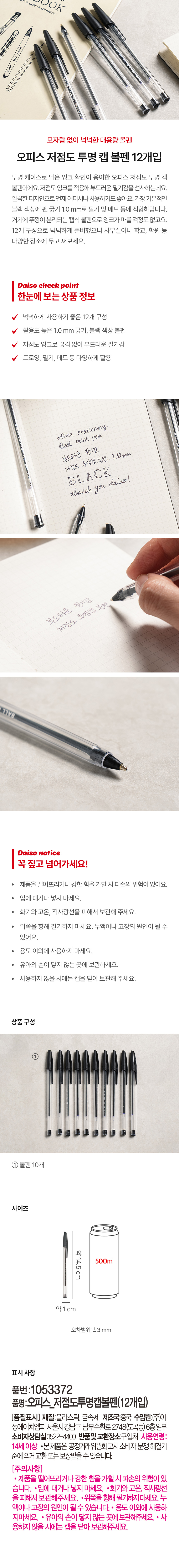 DAISO Office_Low viscosity transparent cap ballpoint pen (12 pieces)
