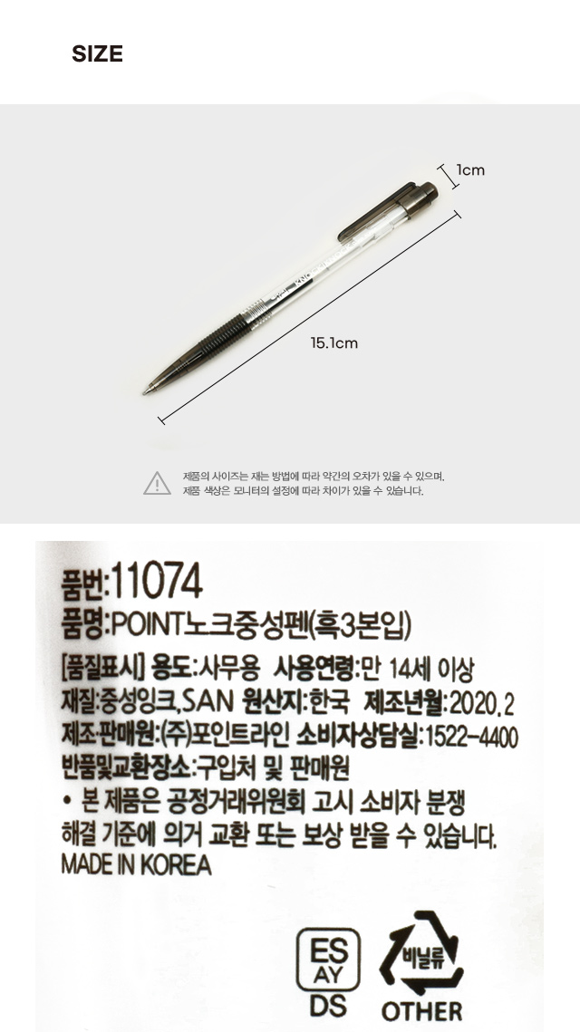 DAISO POINT Knock Neutral Pen (Black 3 pcs)