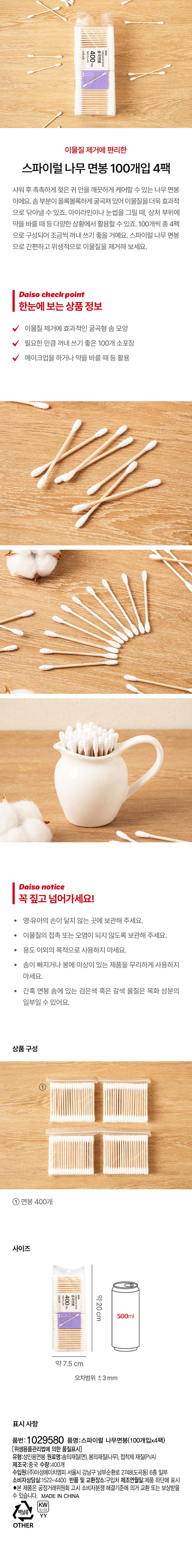 DAISO Spiral Cotton Swab (100 pcs * 4 Pack)