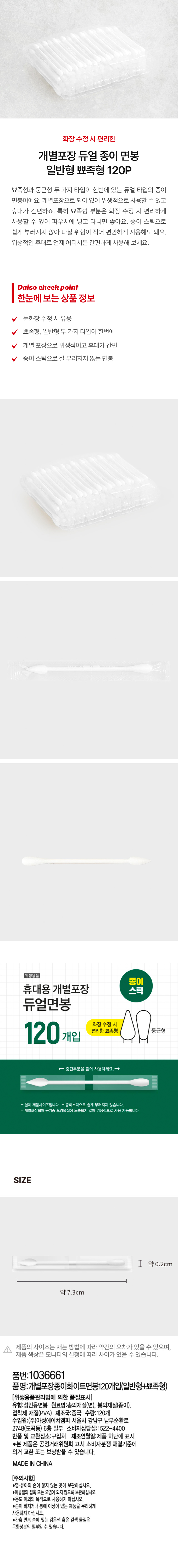 DAISO Individually packaged Paper White Cotton Swabs 120 pcs (Regular + Pointed)