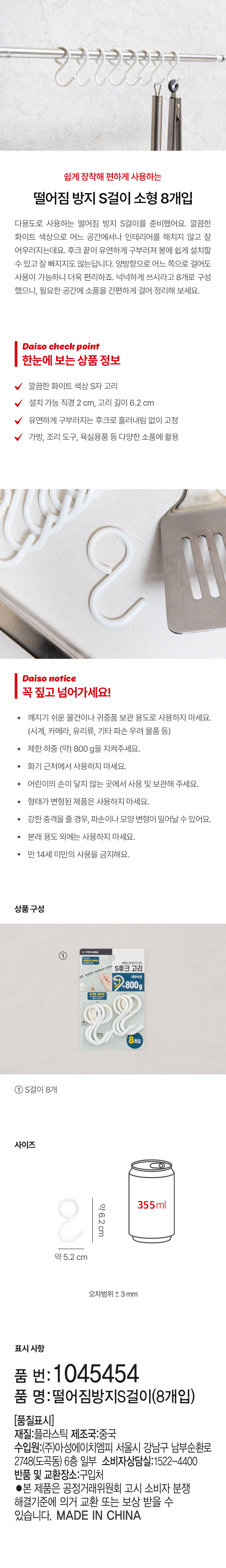 DAISO Anti-fall S hook (8 pieces)