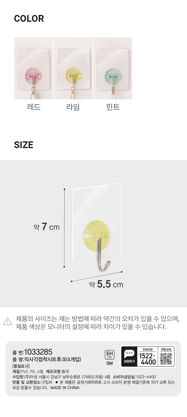 DAISO Rectangular adhesive sheet hooks (4 pieces)
