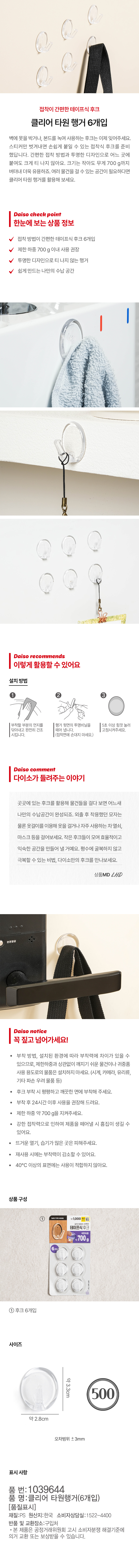 DAISO clear oval hanger (6 pieces)