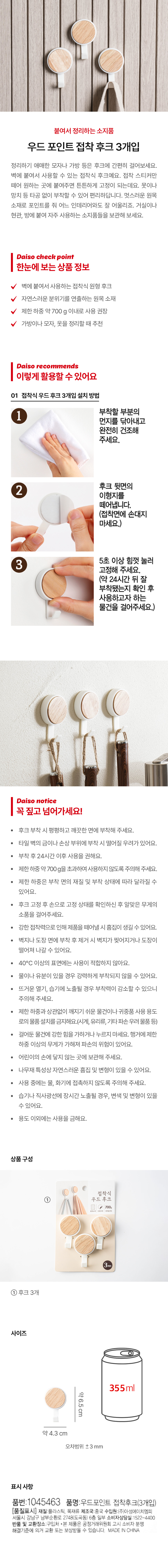 DAISO Woodpoint Adhesive Hooks (3 pieces)
