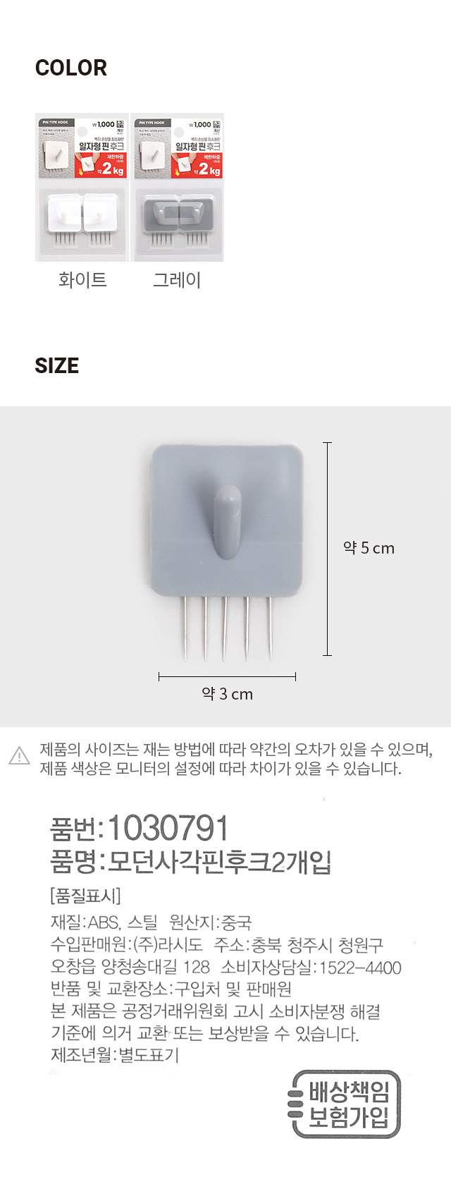DAISO Modern square pin hook 2 pieces