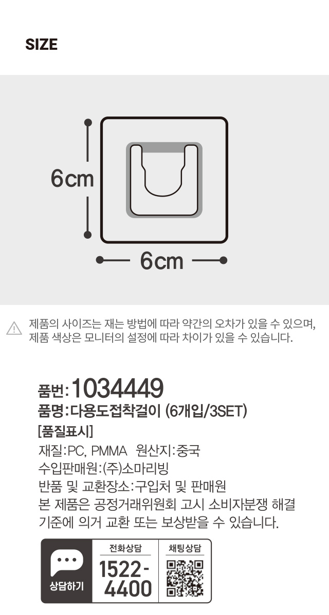 DAISO Multipurpose Adhesive Hanger (6 pieces/3 sets)