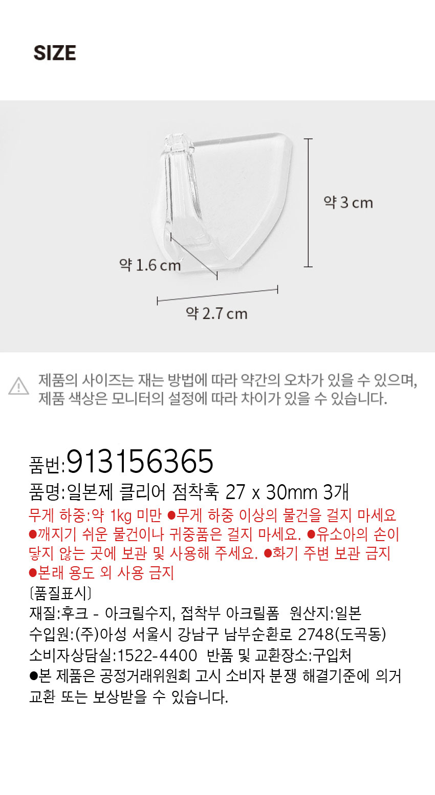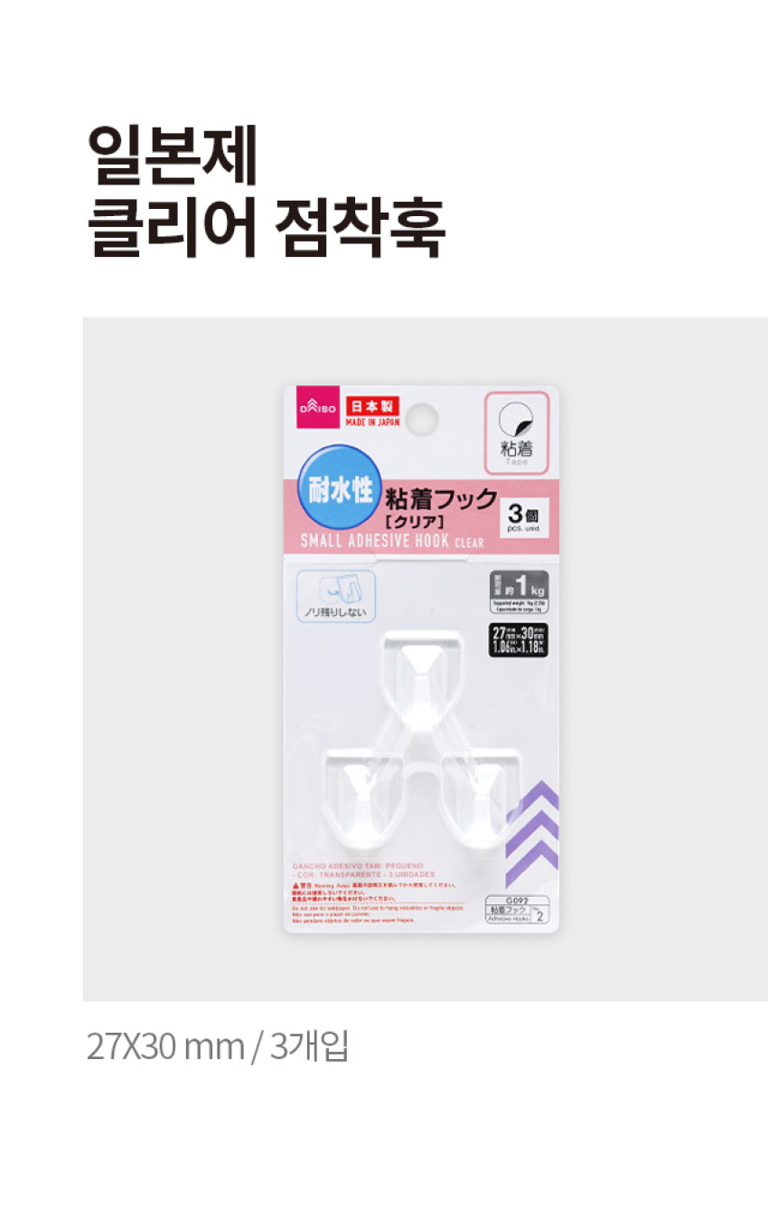 DAISO clear adhesive hook (27*30mm) 3 pieces