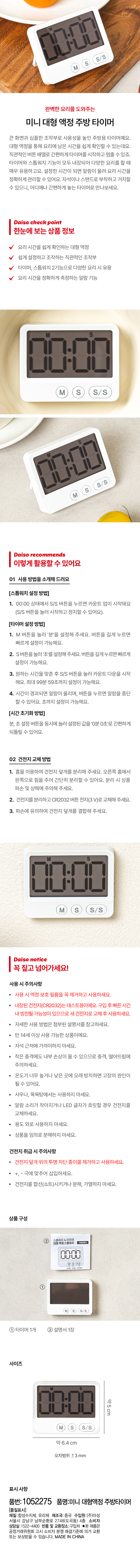 DAISO Mini Large LCD Kitchen Timer