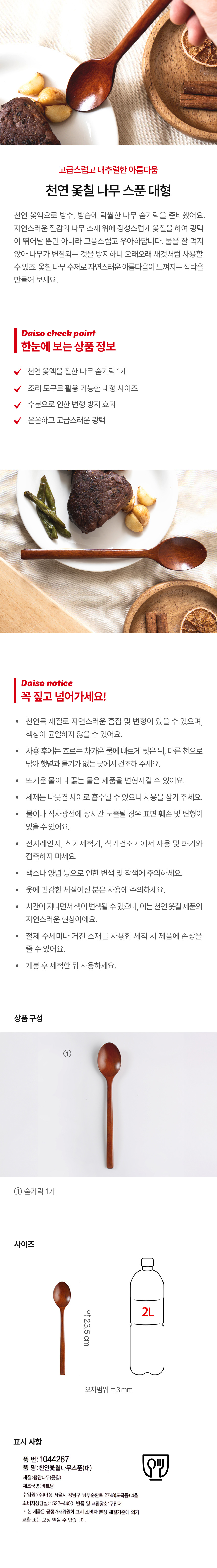 DAISO Natural lacquer wooden spoon (large)