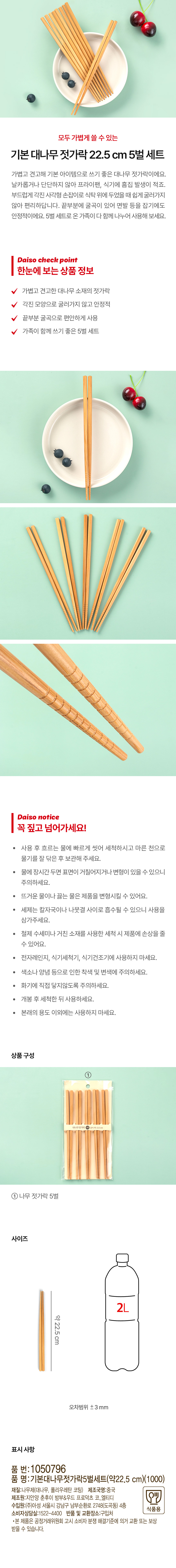 DAISO Basic Bamboo Chopsticks Set of 5 (22.5cm)