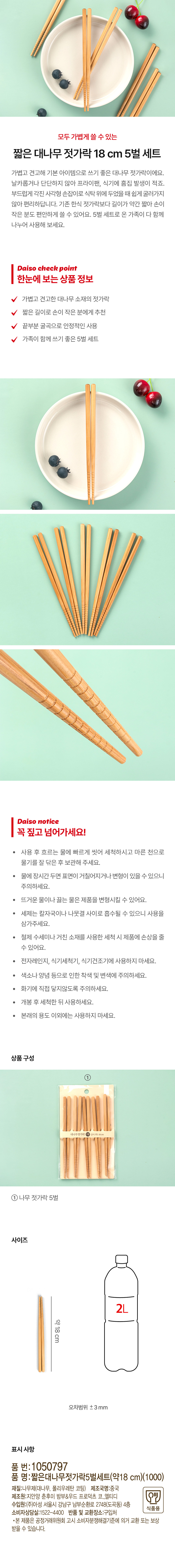 DAISO Set of 5 short bamboo chopsticks (18cm)