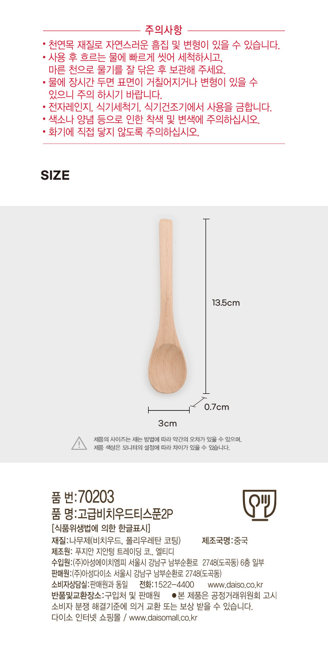 DAISO Premium Beachwood Teaspoon 2P