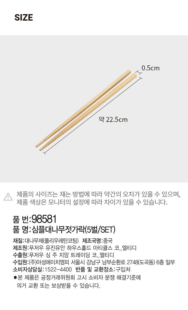 DAISO Simple Bamboo Chopsticks (5bee/SET)