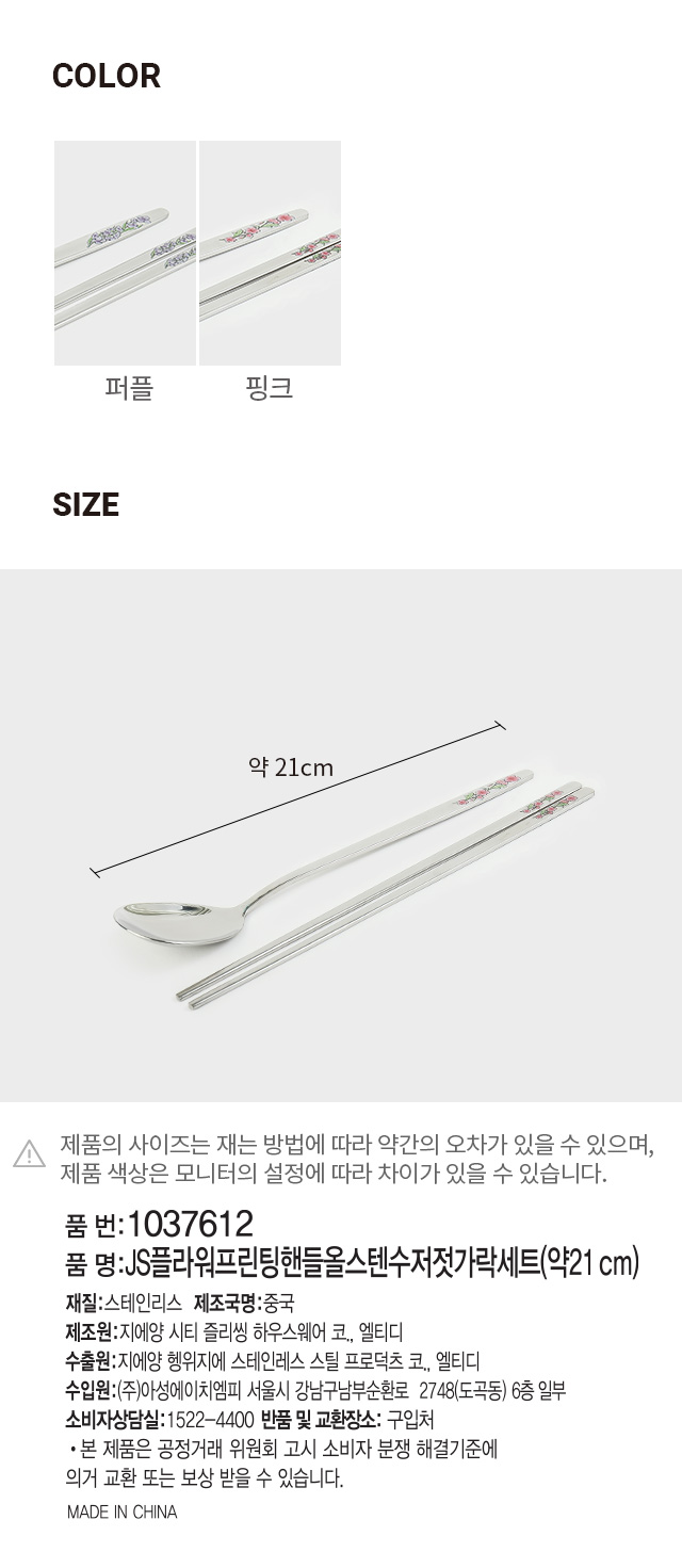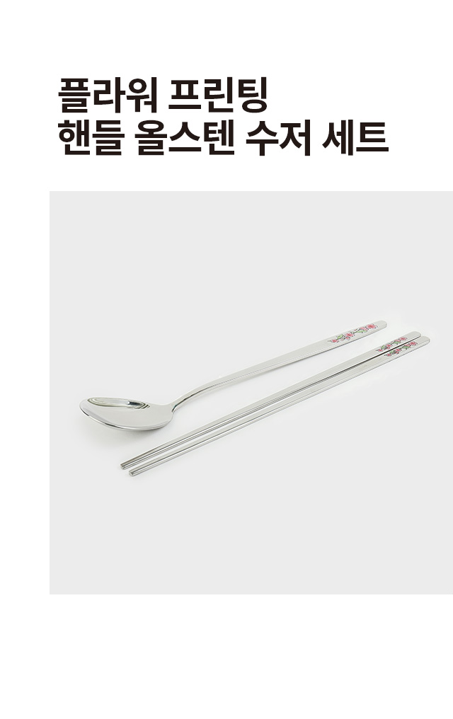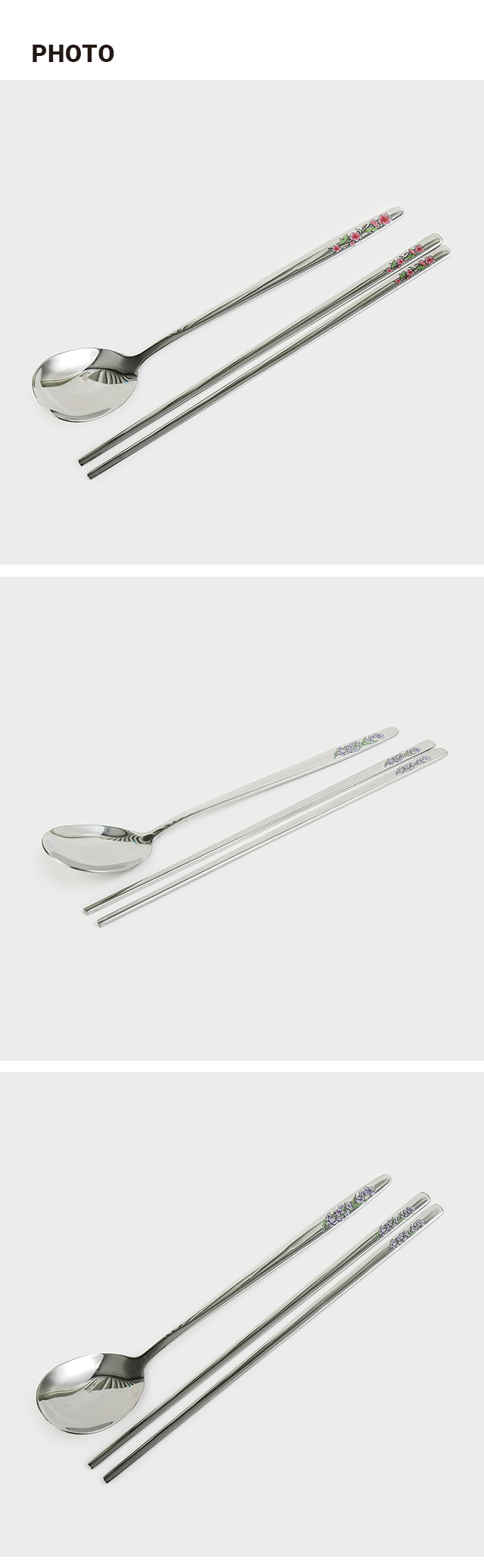 DAISO Flower Print Handle All Stainless Steel Spoon and Chopsticks Set (21cm)