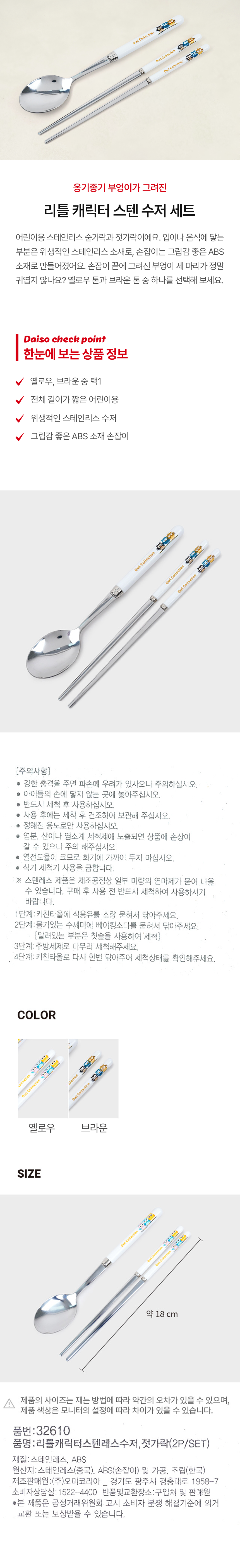 DAISO Little Character Stainless Steel Spoon, Chopsticks (2P/SET)