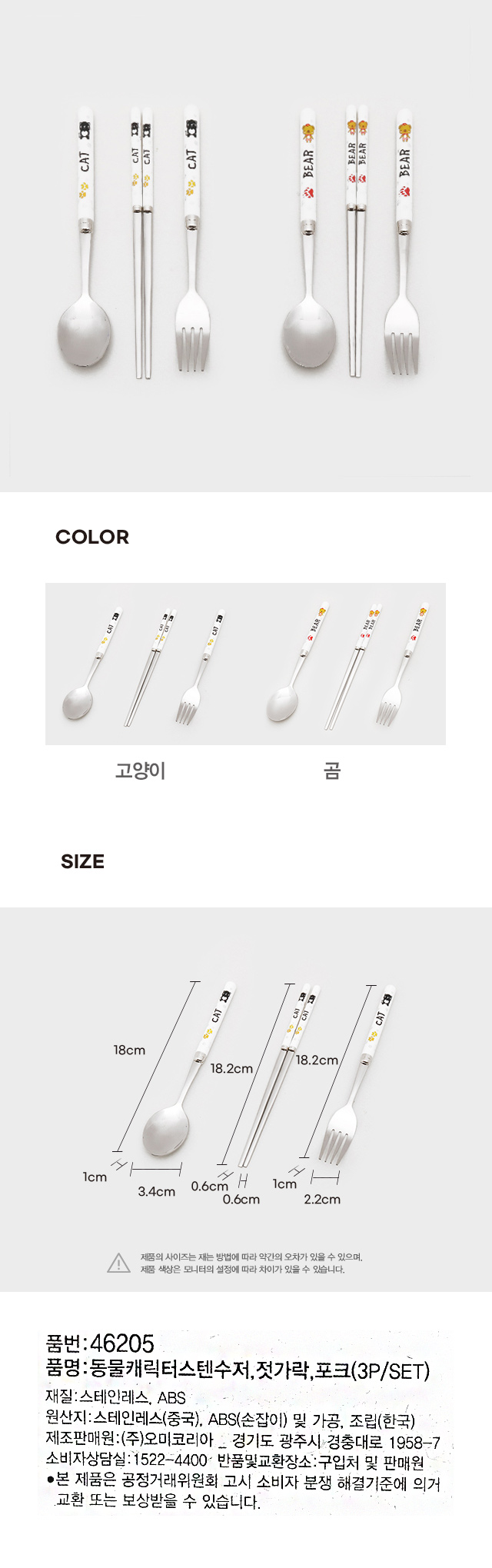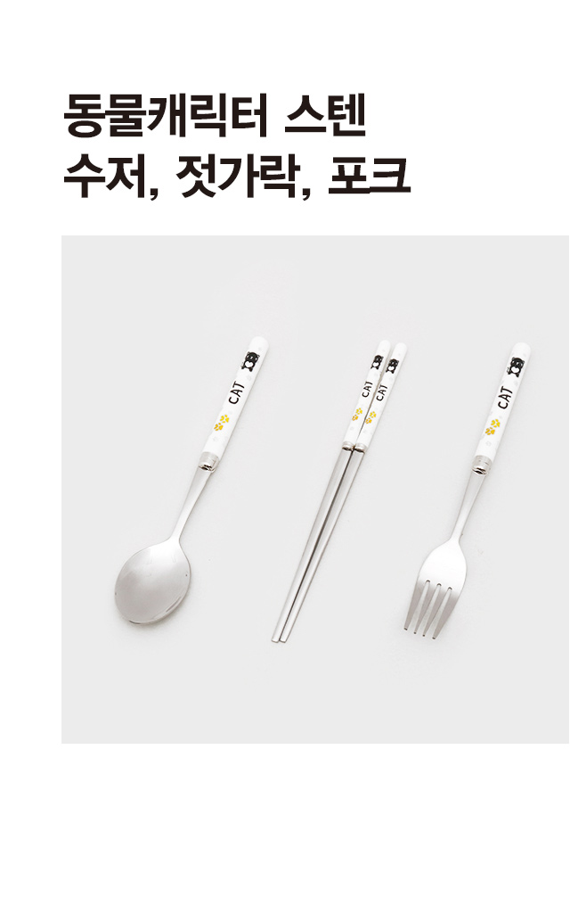 DAISO Animal character stainless steel spoon, chopsticks, fork (3P/SET)