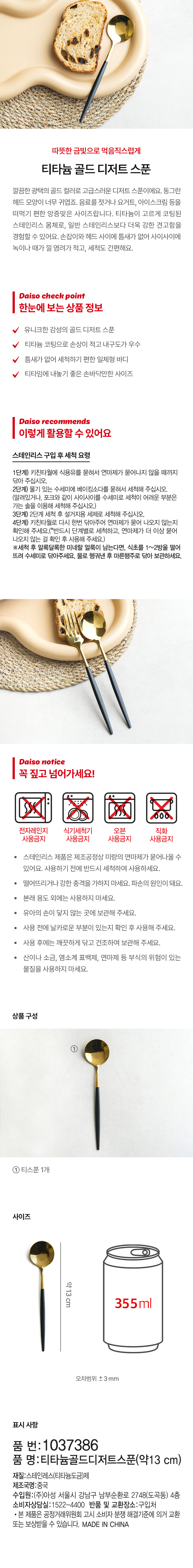 DAISO Titanium Gold Dessert Spoon (13cm)