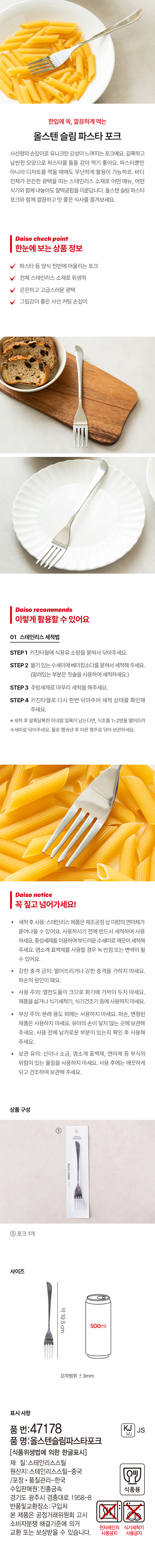 DAISO Allstainless steel slim pasta fork