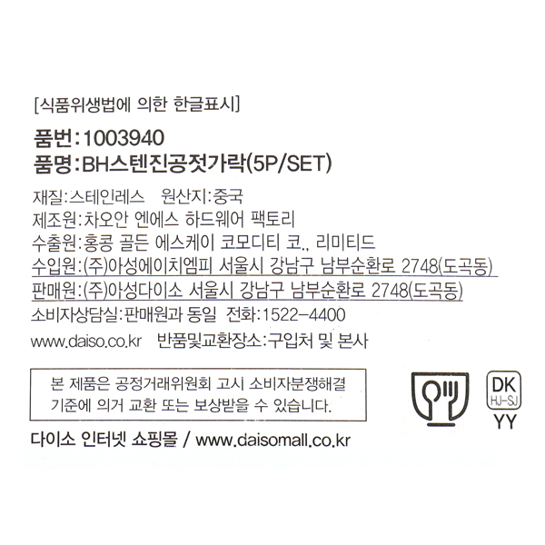DAISO Stainless Steel Chopsticks (5P/SET)