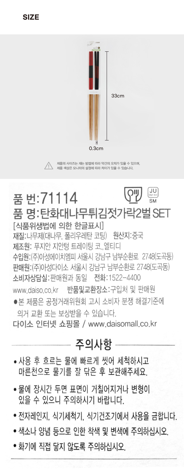 DAISO Carbonized Bamboo Fried Chopsticks 2beeSET