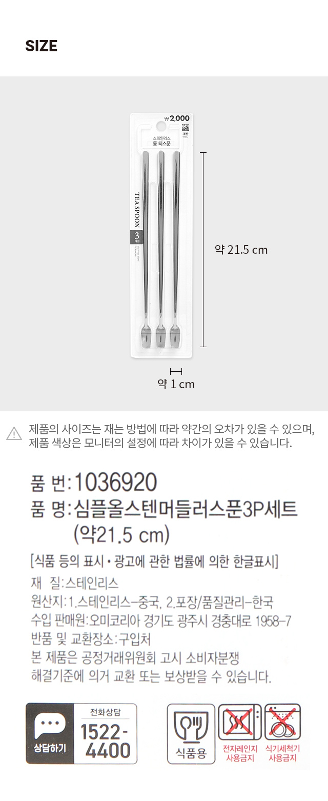DAISO Simple All-Stainless Steel Mudler Spoon 3P Set (21.5 cm)