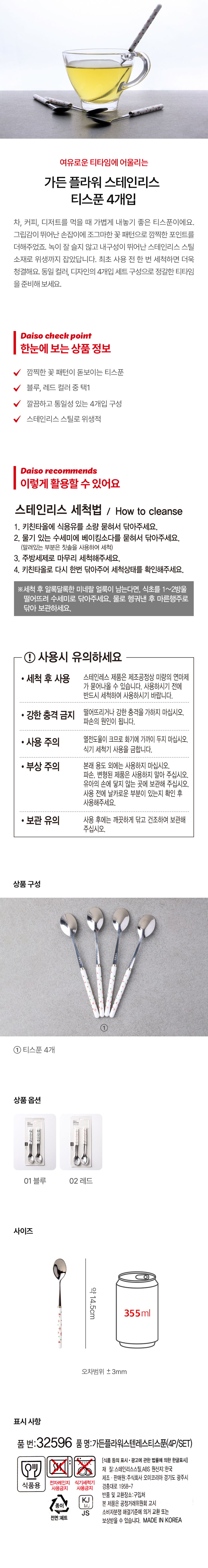 DAISO Garden Flower Stainless Steel Teaspoon (4P/SET)