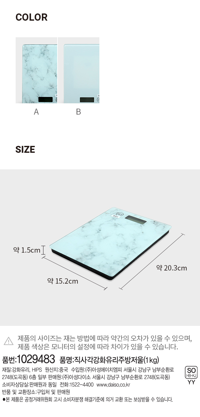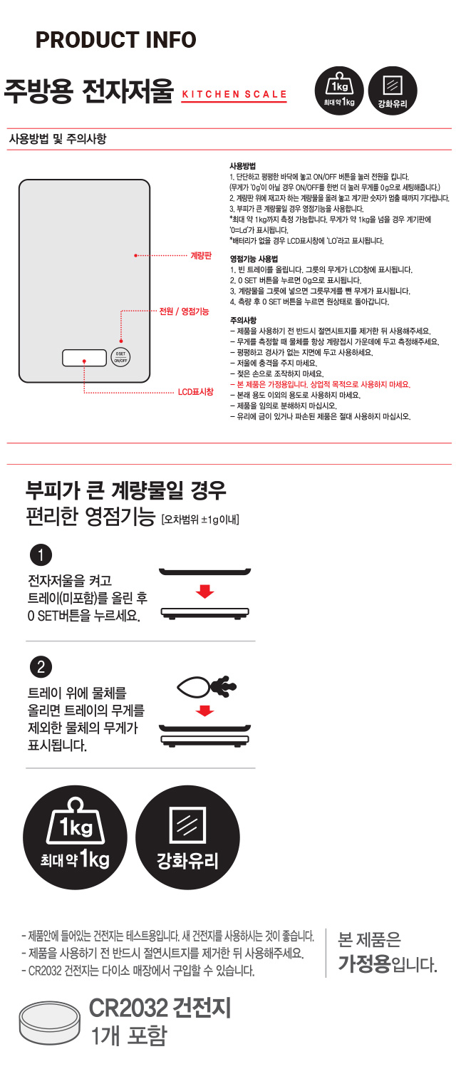 DAISO Rectangular tempered glass kitchen scale (1kg)