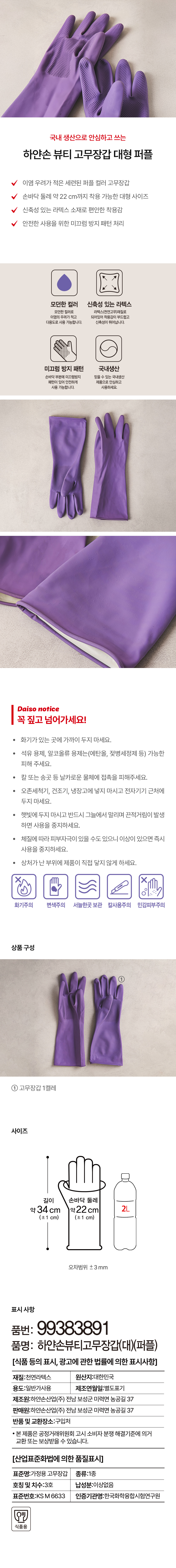 DAISO White Hand Beauty Rubber Gloves (Large) (Purple)