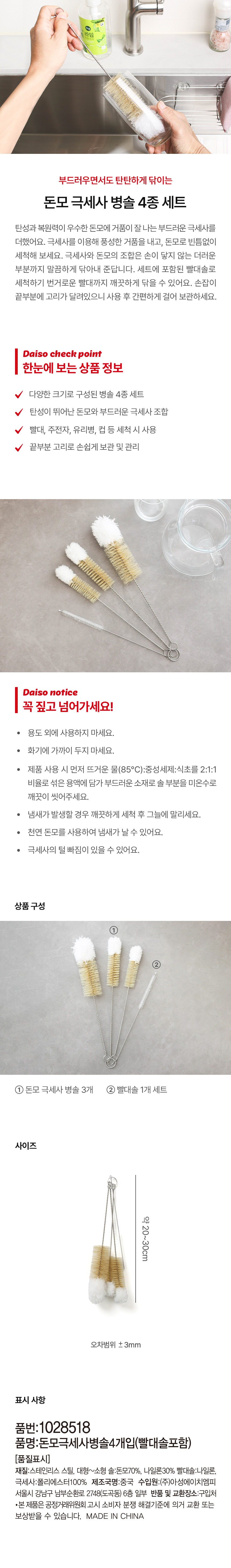 DAISO Donmo Microfiber Brush 4 Pieces (Including Straw Brush)