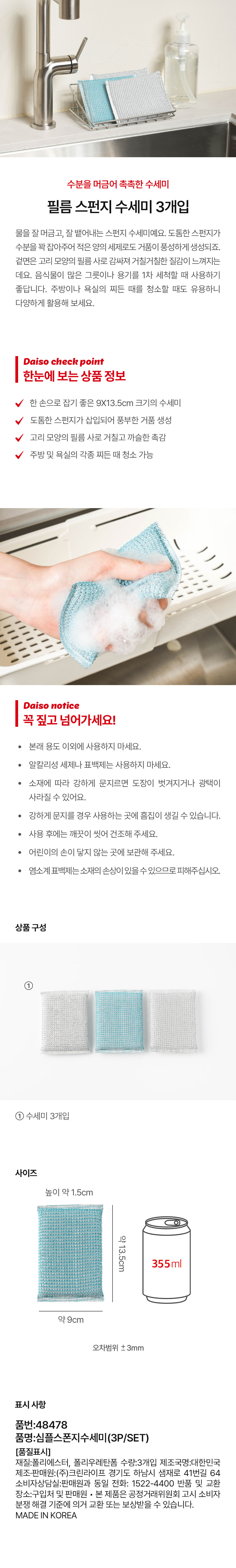 DAISO Simple sponge washcloth (3P/SET)