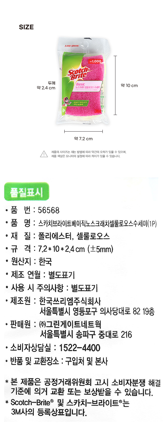DAISO Scotch Brite Basic No Scratch Cellulose Washcloth (1P)