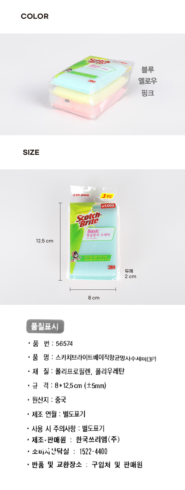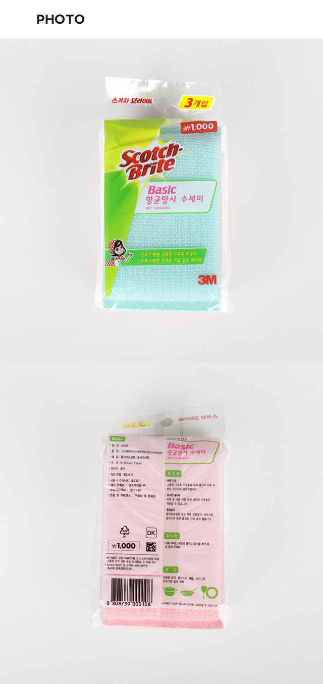 DAISO Scotch-Brite Basic Antibacterial Mesh Washcloth (3P)