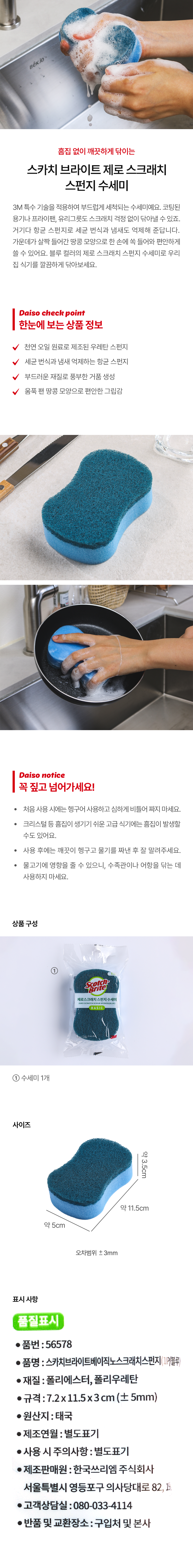 DAISO Scotch Brite Basic No Scratch Sponge (1P/Blue)