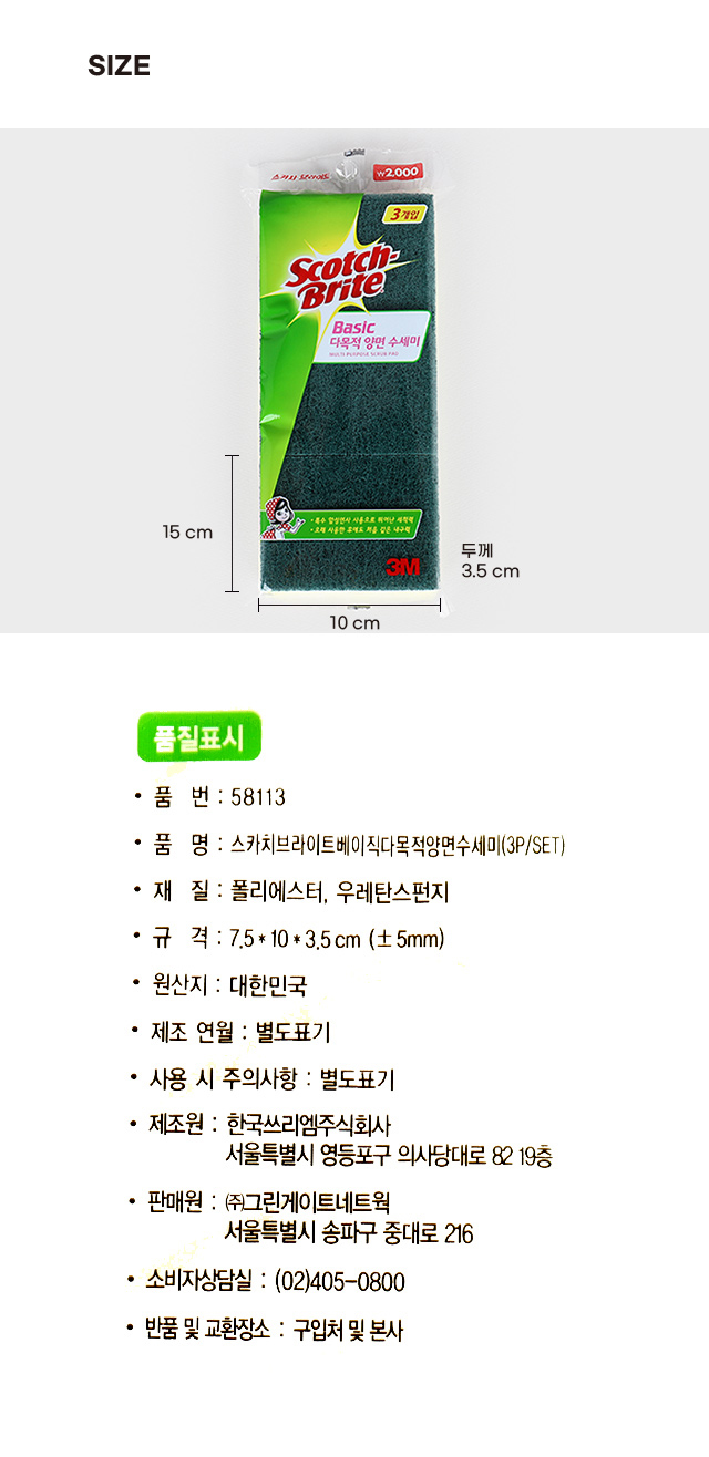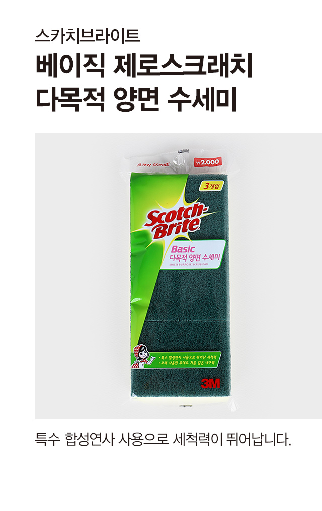 DAISO Scotch-Brite Basic Multipurpose Double-Sided Scrubber (3P/SET)